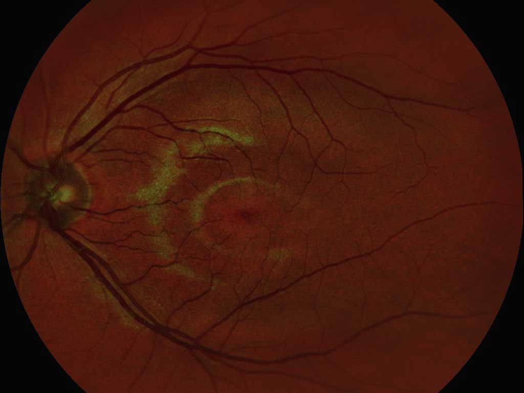 - Augenhintergrund-Untersuchung: Mit einer Spaltlampe oder Funduskamera wird die Makula untersucht.